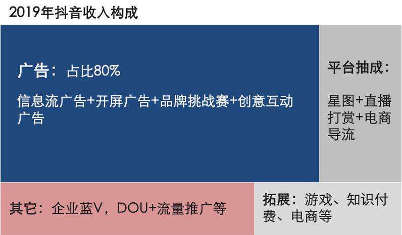 在回答这个问题前,我们先来看这份研究报告,来自方正证券。数据显示,2019年的抖音收入构成中,广告占比高达80%,反观快手,直播占比60%,广告只占了不到30%。